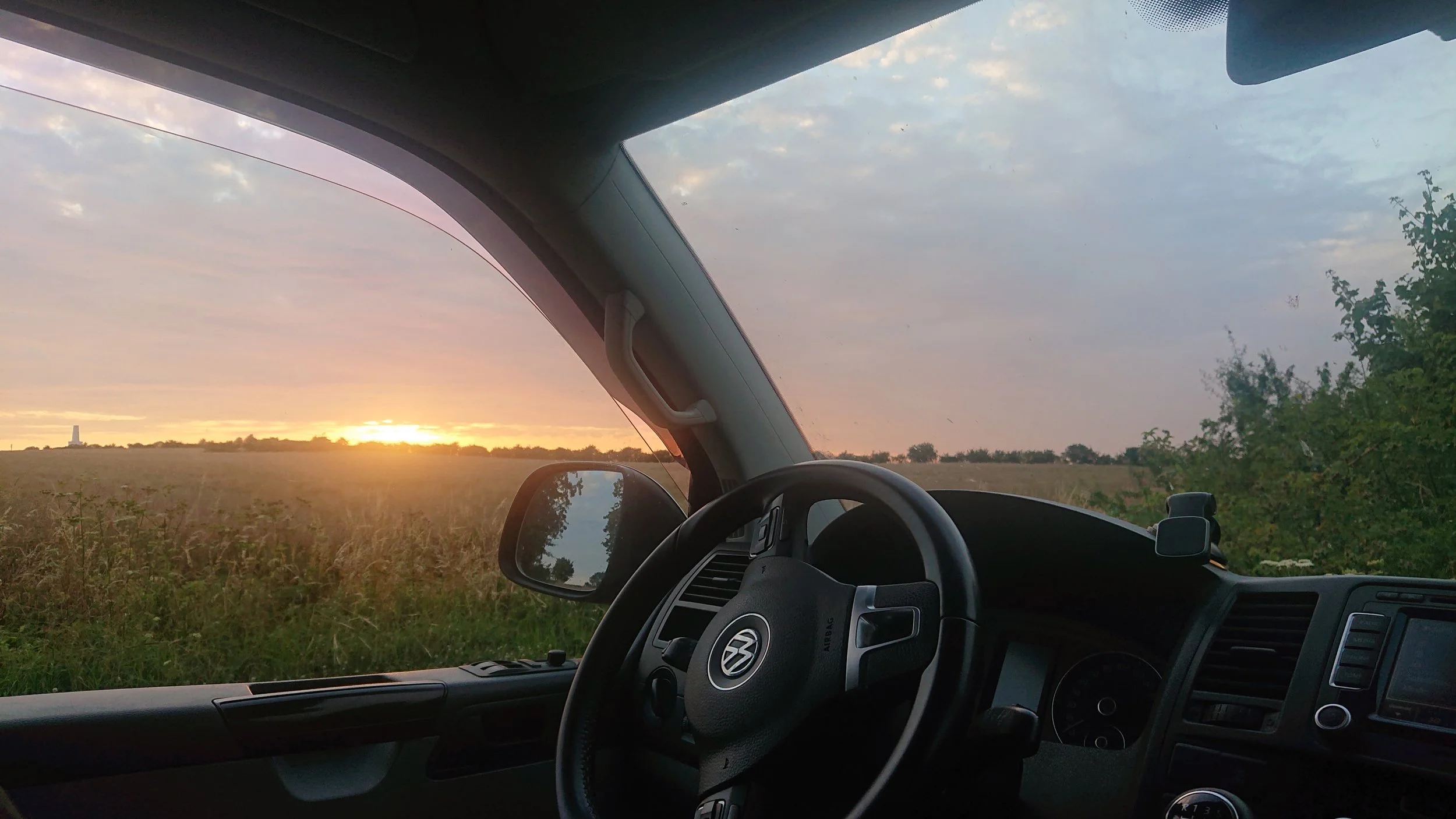 But then it was time to leave. It was an easy drive with little traffic, and we found quite a nice sleeping spot among the fields with a pretty sunset.