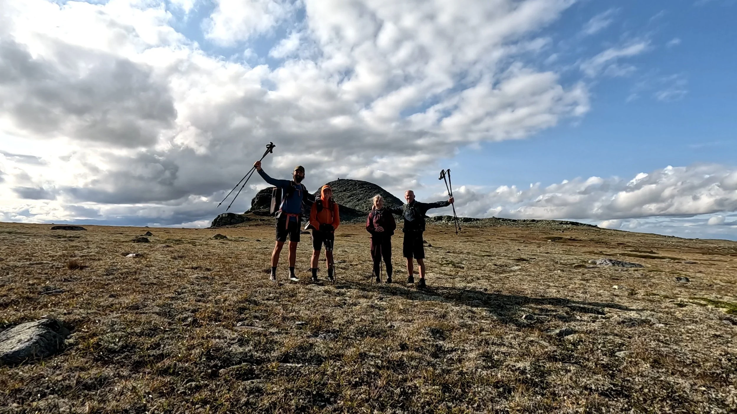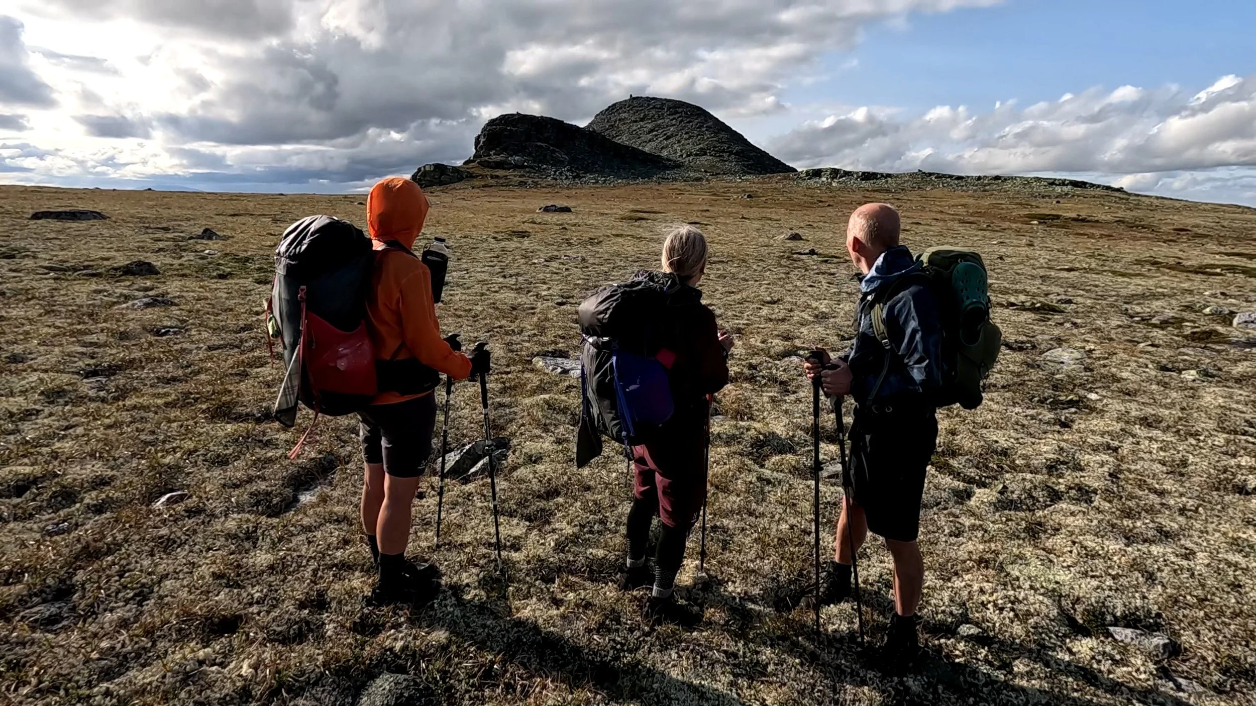 The first km was a dirt road taking us all the way up the mountain. At the end of the car road, we met a reindeer hunter. So apparently now we were in an area where there was wild reindeer. That was new for us.