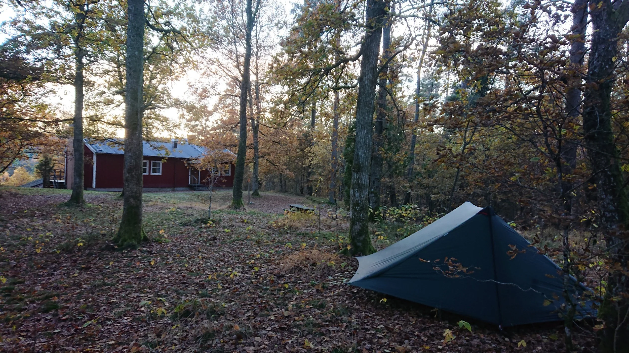 Now - back to my hike I guess. In the afternoon Via Suecia followed Hallandsleden, but in one spot (Ingemansbo) it detoured from it. First I had to walk through someone's property and a fence/pasture which made me feel uncomfortable. It's totally okay to do that in Sweden, I just feel bad doing it. Then, I crossed an area that was flooded, and then came to someone else's property. I didn't feel comfortable crossing this one either, so now I decided to just get out to the road. I then followed that road (and an old train embarkment) for the rest of the day, until I passed Ryaberg. Here I took a trail to Gyltige where I found a flat spot where I could pitch my tent. And for once, I don't remember last time it occurred, I pitched it before sunset! I also found (tap) water, and a toilet you could pay to use (and pay 100 kr to camp close by) which I didn't feel like doing. On the Internet, several sources said there was a privy nearby, but despite walking around quite a lot in the area, I never found it. Really annoying!
