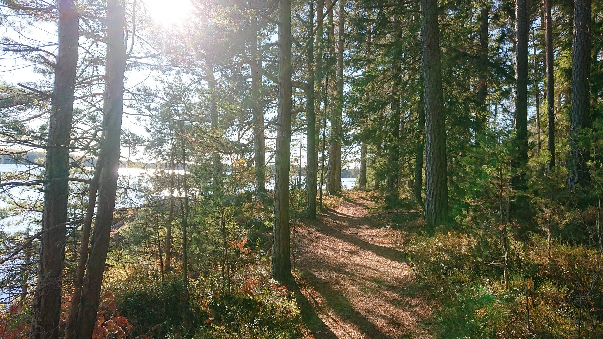 I was taking my time here, enjoying the sun, reading signs and just strolling through. Unfortunately I had a female photographer just behind me, keeping basically the exact same pace as me which made me feel followed. When I stopped, she stopped etc... So when I wanted to look for a geocache I found a rock which I sat down on, and took another break and had some Ballerina biscuits. Again, she stopped close by to take a lot of photos, and when she left, I was deeeep in my phone 😂 So I sat there for quite some time. But I finally found the geocache and could keep on moving. I realised though, that all of these breaks would mean I would have to walk a long time in the dark tonight. And with almost 10 km left, the sun began to set. Not a lot more of interest happened while I walked on and on along dirt roads towards my goal along Björklången. Not until I had about 500 meters left!